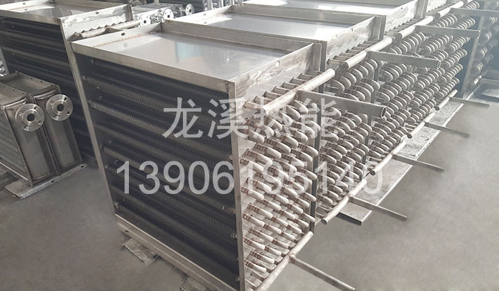 翅片管與進氣和回水總管的連接,均采用氩弧焊,焊接處進行酸洗潔淨。BGL型熱變換器,既是熱交換,又是冷卻俱能。通入低溫水或鹽水可以冷卻空氣,通入高溫水或蒸汽即能加熱空氣。