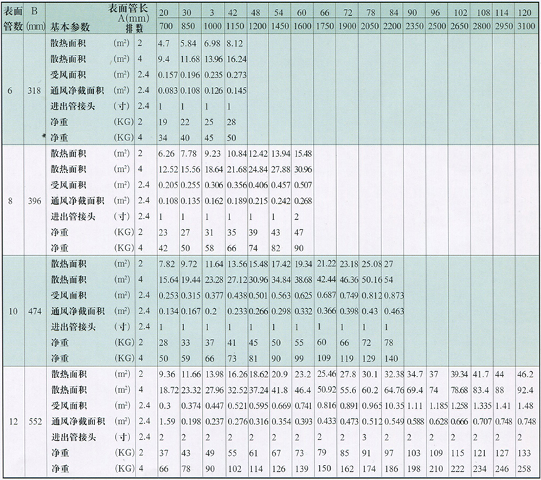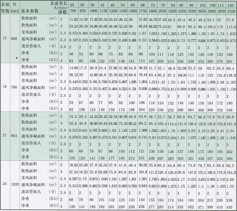 如采用四排,表面管數爲10,管長爲42英寸時,則爲GLⅡ-4-10-42。